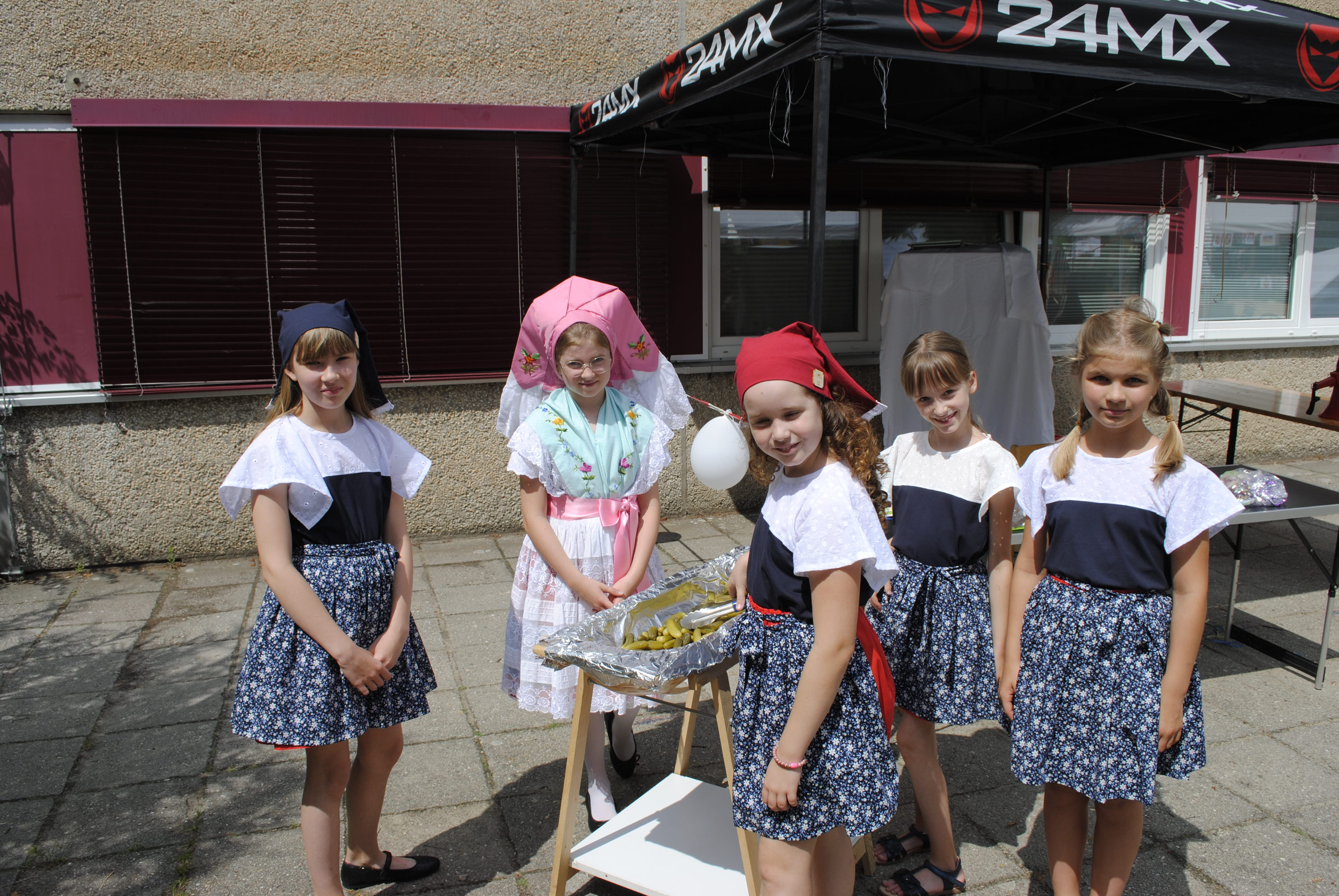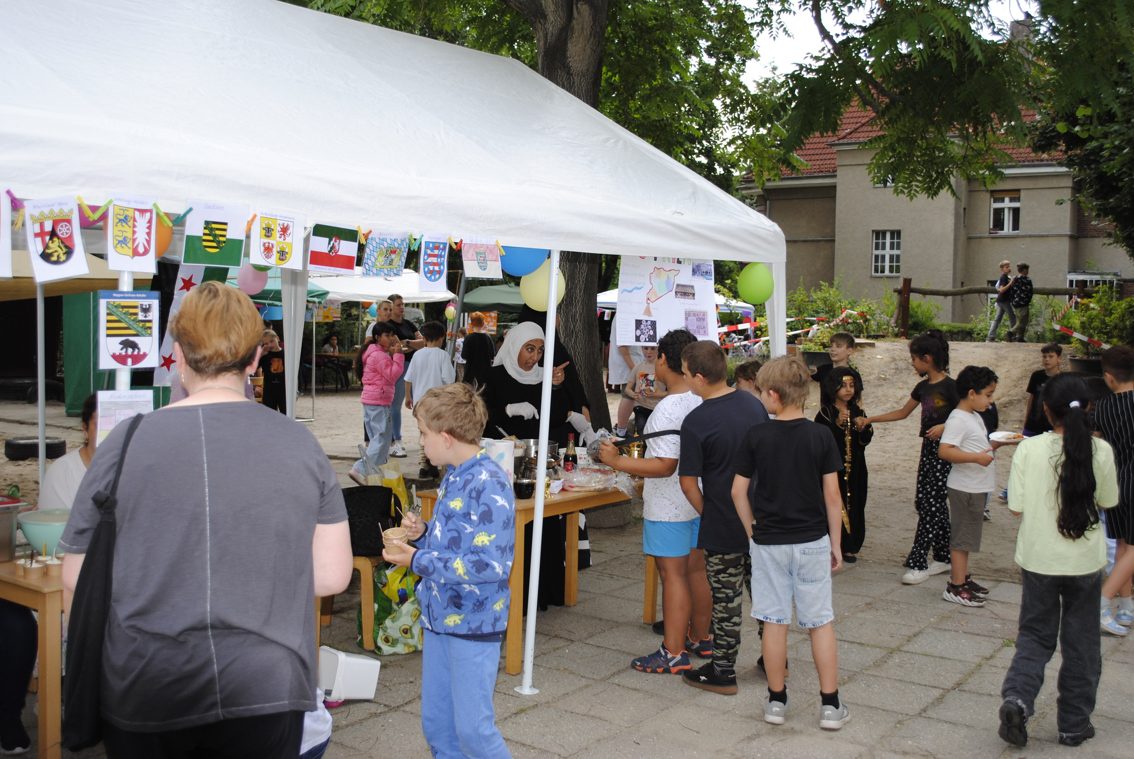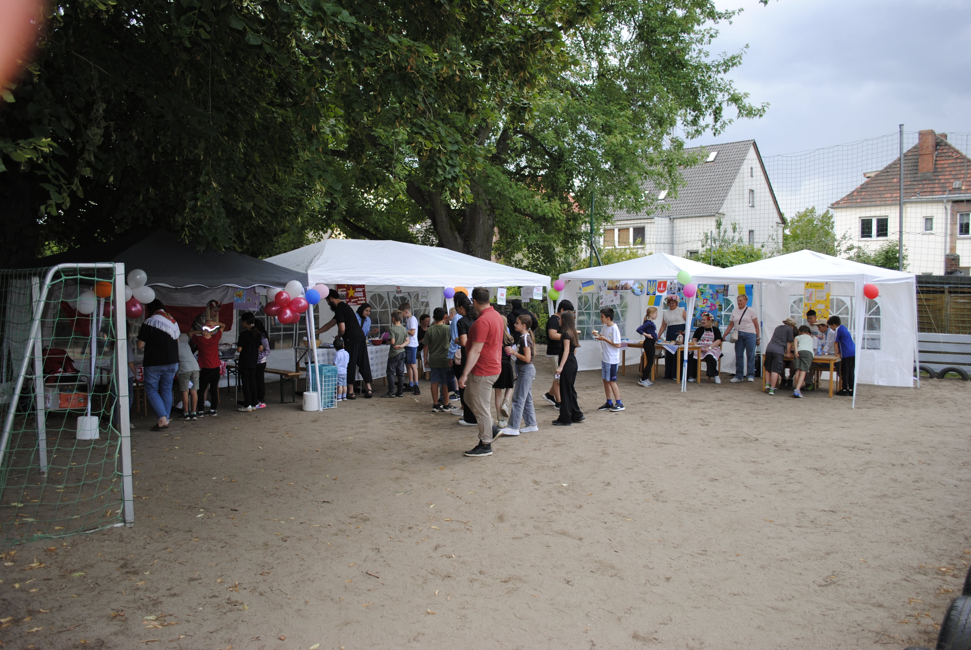 Das Sommerfest im Hort stand ganz im Zeichen des Themas "Eine Reise um die Welt". Gemeinsam konnte die Besucher eine spannende Reise durch verschiedene Länder und Kulturen unternehmen. Es gab vielfältige Aktivitäten, Fingerfood und Bastelstationen, die die Vielfalt der Welt widerspiegelten. Die Kinder konnten beispielsweise traditionelle Speisen aus verschiedenen Ländern kosten und Spiele aus aller Welt spielen. Das Fest war eine tolle Gelegenheit, um die Neugier der Kinder für andere Kulturen zu wecken und gemeinsam einen fröhlichen Tag zu verbringen. Von Russland bis Vietnam, von Deutschland bis Tschetschenien, von Kamerun bis Ukraine. Es war ein buntes und gelungenes Event, das die Kinder mit viel Freude und Begeisterung erlebt haben! Auch der Kuchenbasar war ein voller Erfolg. Hier konnten wir Spenden einsammeln, um für unsere Einrichtung neue Indoor- und Outdoorspielzeuge besorgen zu können.