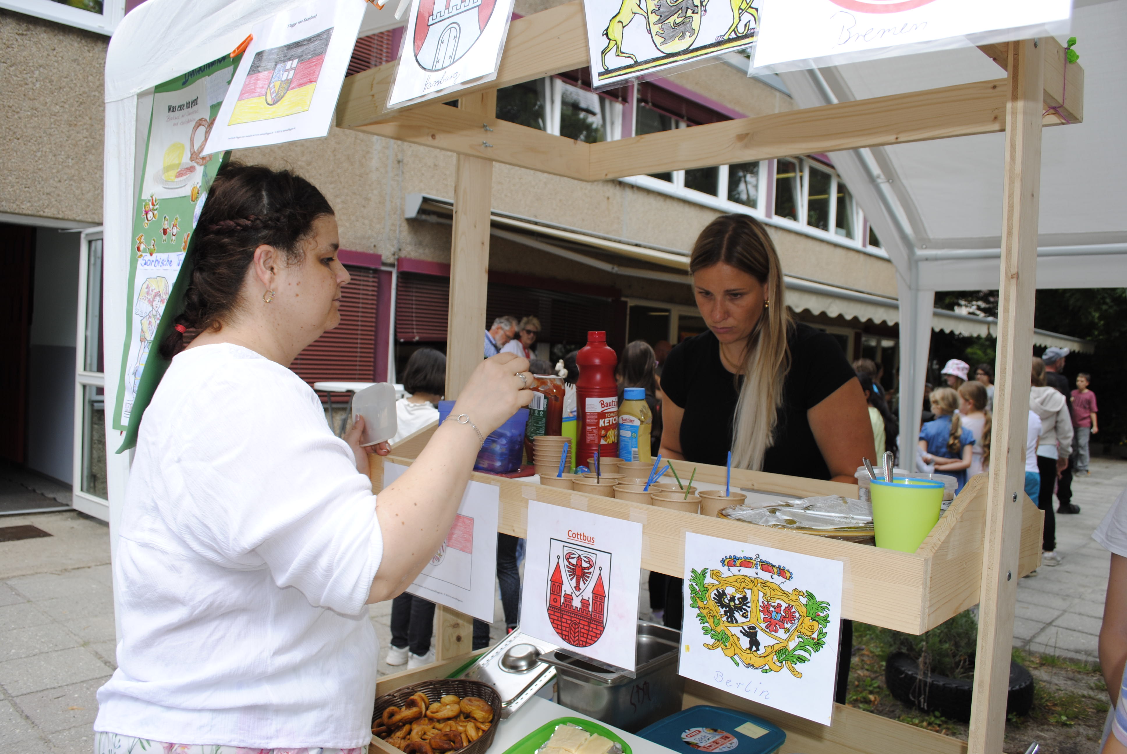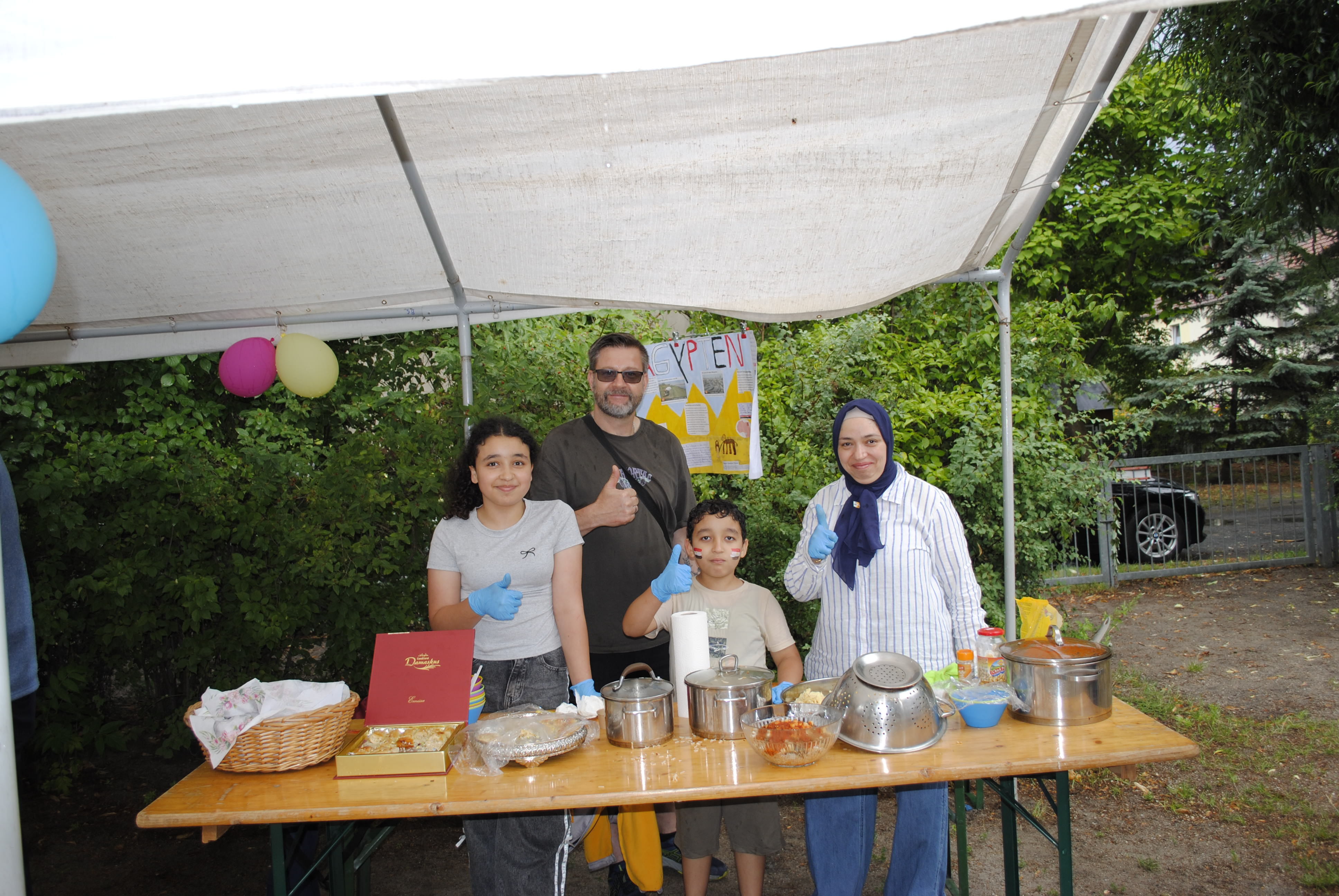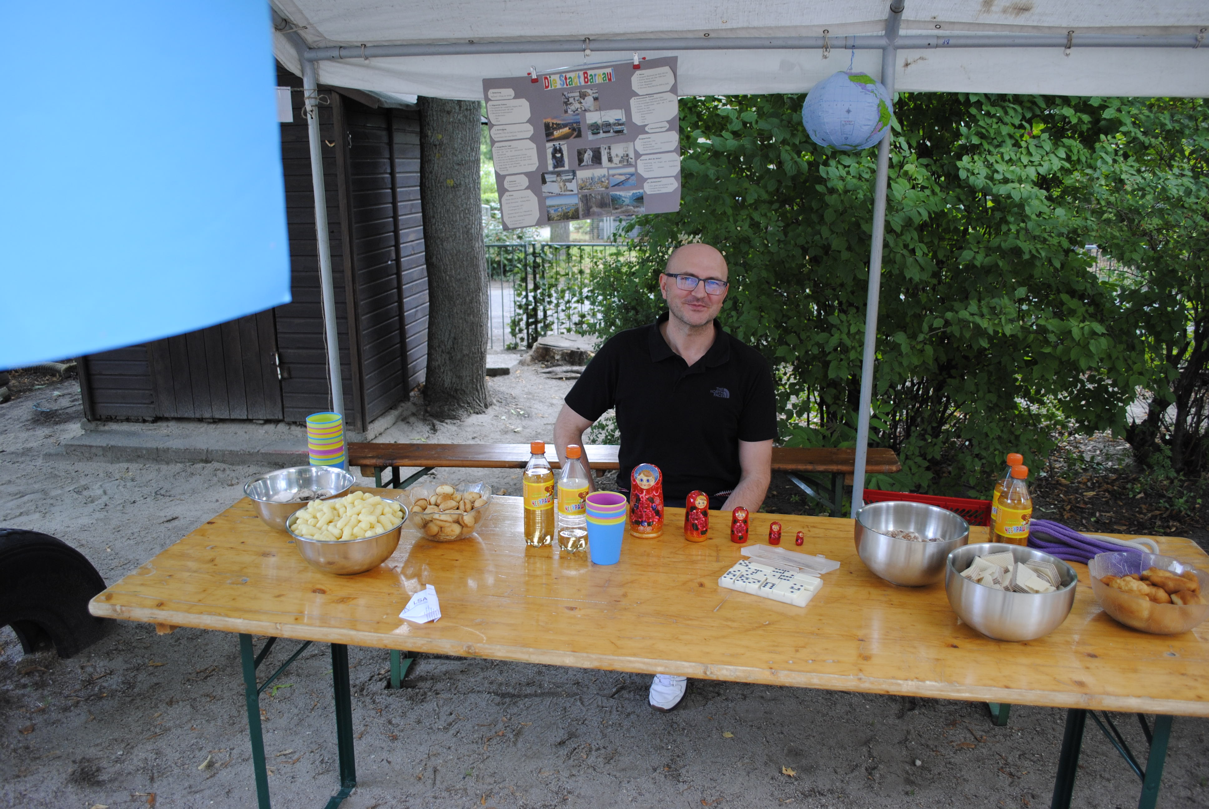 Das Sommerfest im Hort stand ganz im Zeichen des Themas "Eine Reise um die Welt". Gemeinsam konnte die Besucher eine spannende Reise durch verschiedene Länder und Kulturen unternehmen. Es gab vielfältige Aktivitäten, Fingerfood und Bastelstationen, die die Vielfalt der Welt widerspiegelten. Die Kinder konnten beispielsweise traditionelle Speisen aus verschiedenen Ländern kosten und Spiele aus aller Welt spielen. Das Fest war eine tolle Gelegenheit, um die Neugier der Kinder für andere Kulturen zu wecken und gemeinsam einen fröhlichen Tag zu verbringen. Von Russland bis Vietnam, von Deutschland bis Tschetschenien, von Kamerun bis Ukraine. Es war ein buntes und gelungenes Event, das die Kinder mit viel Freude und Begeisterung erlebt haben! Auch der Kuchenbasar war ein voller Erfolg. Hier konnten wir Spenden einsammeln, um für unsere Einrichtung neue Indoor- und Outdoorspielzeuge besorgen zu können.